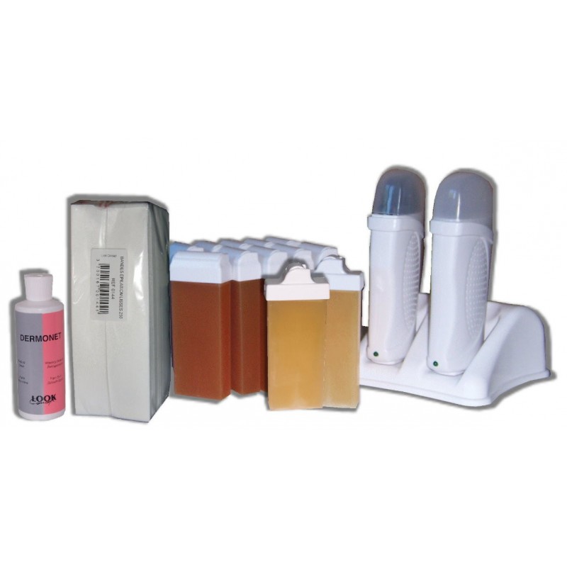 KIT CHAUFFE CIRE DOUBLE 100 ml + 12 recharges MIEL (corps et visage) + ACCESSOIRES